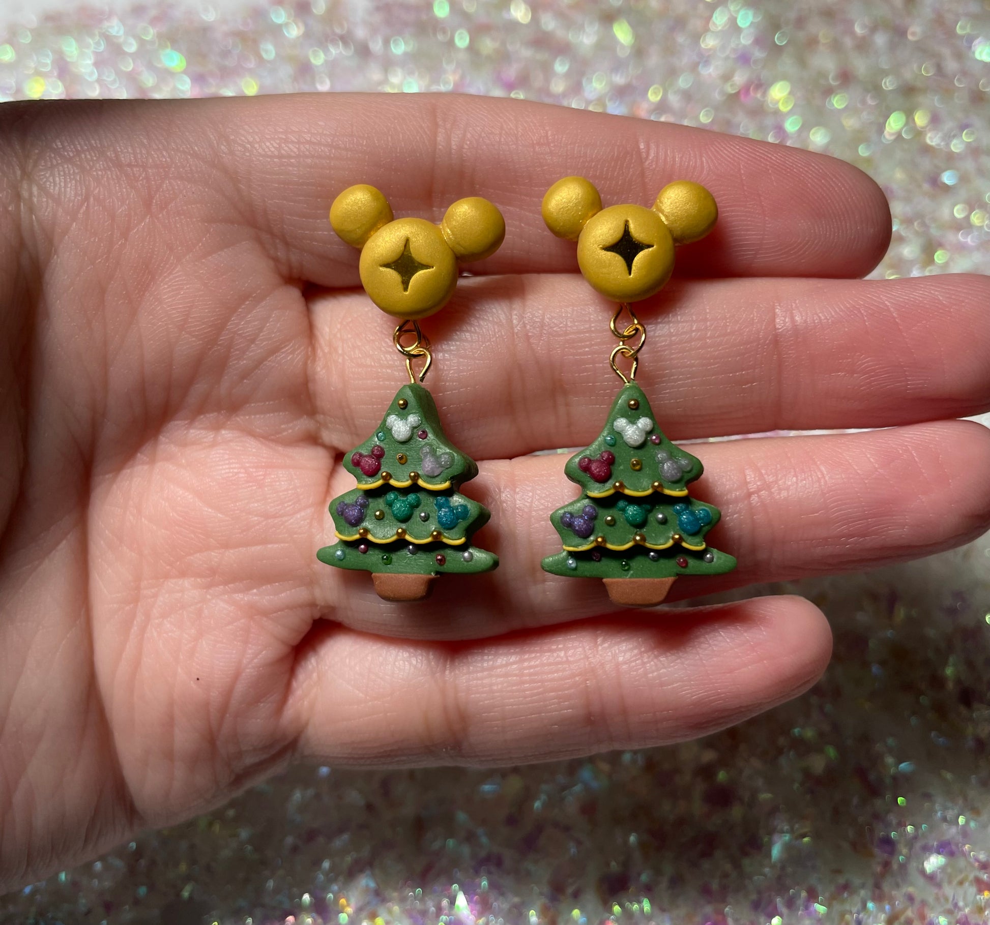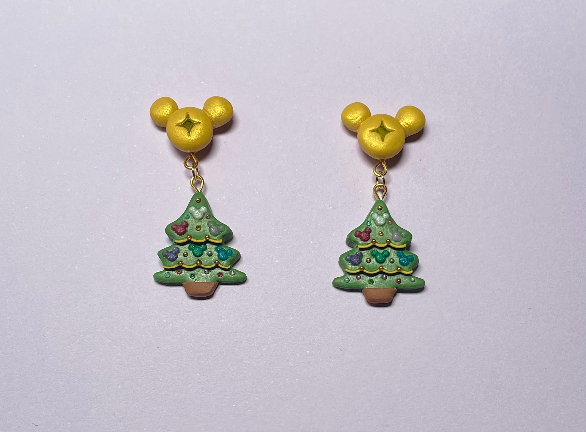- These festive earrings feature Christmas trees with mini mouse heads and mircobeads