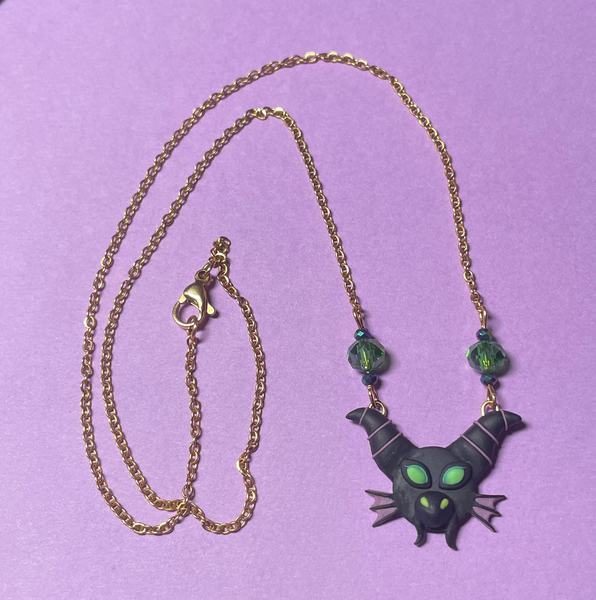 - This necklace features the Mistress of Evil in her villainous dragon form