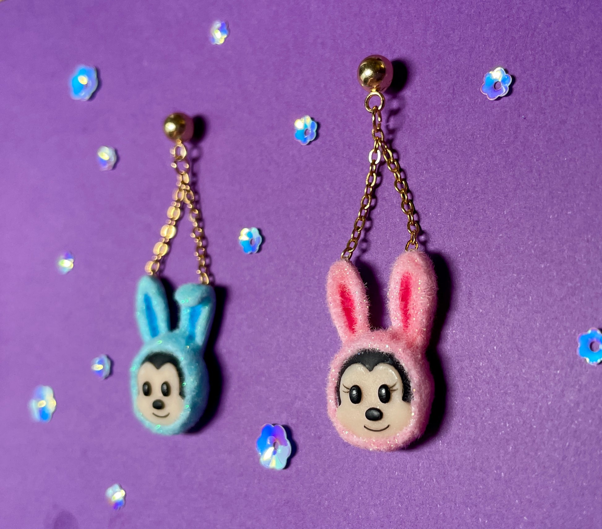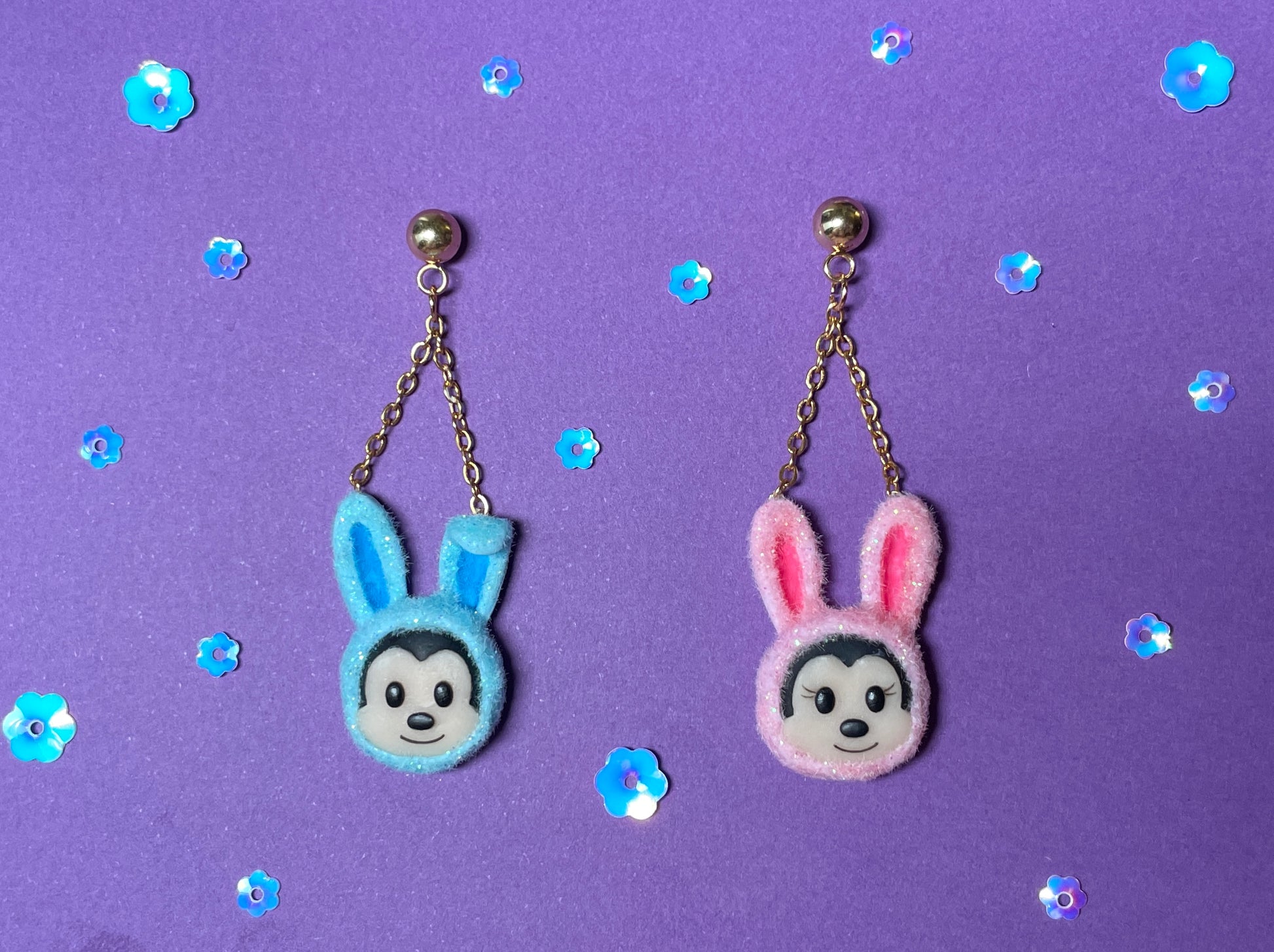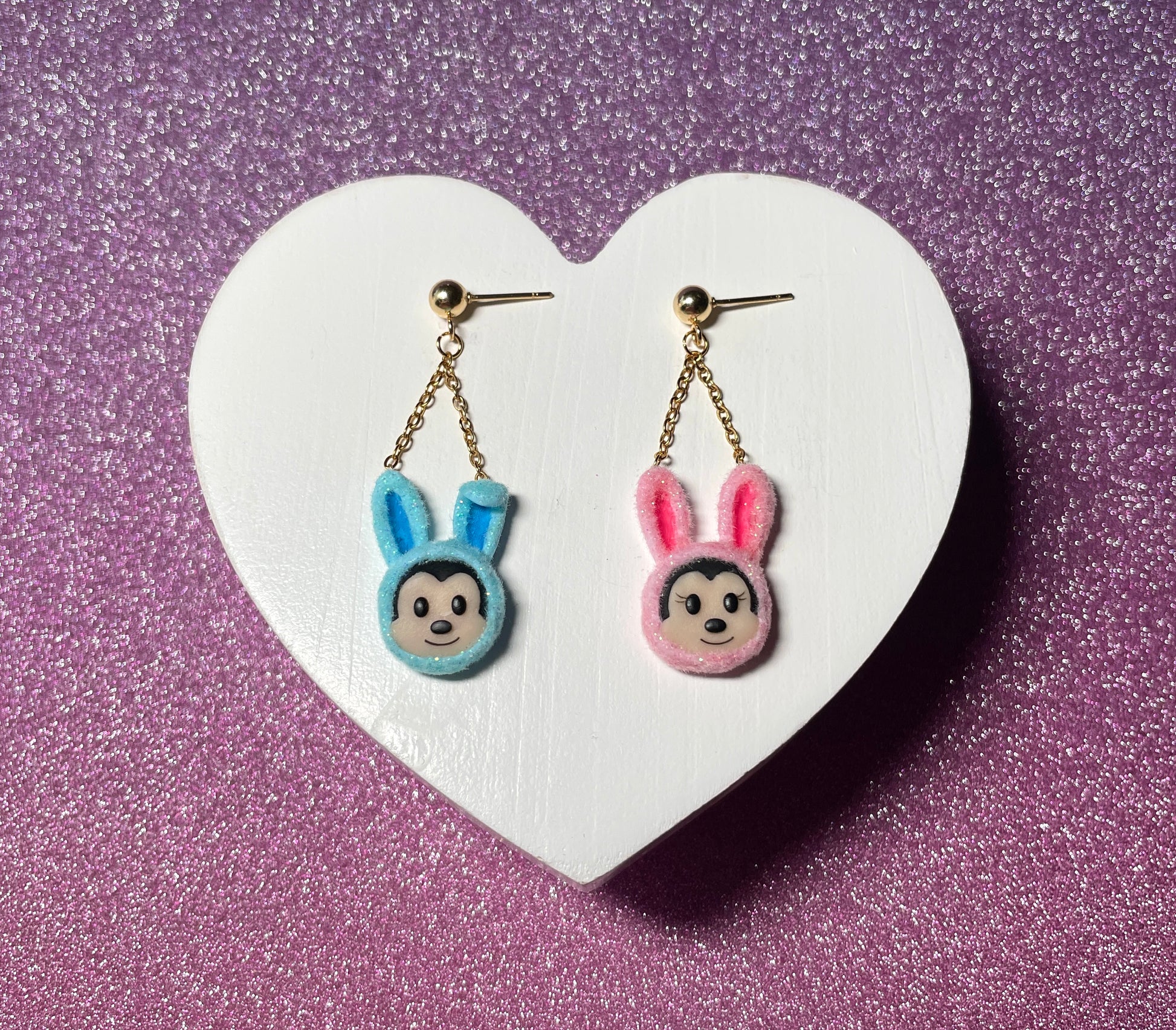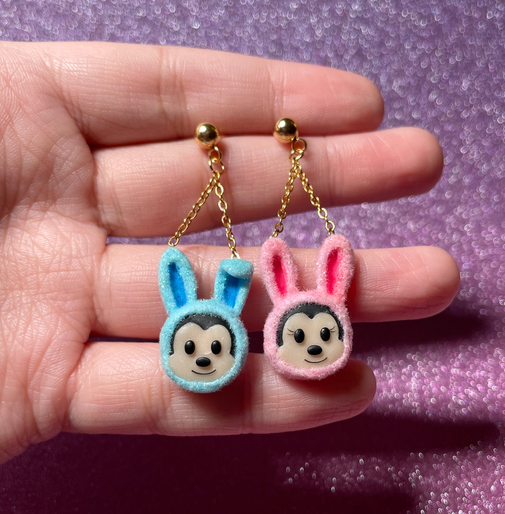 - These furry earrings feature the mouse couple dressed up in their Easter bunny outfits