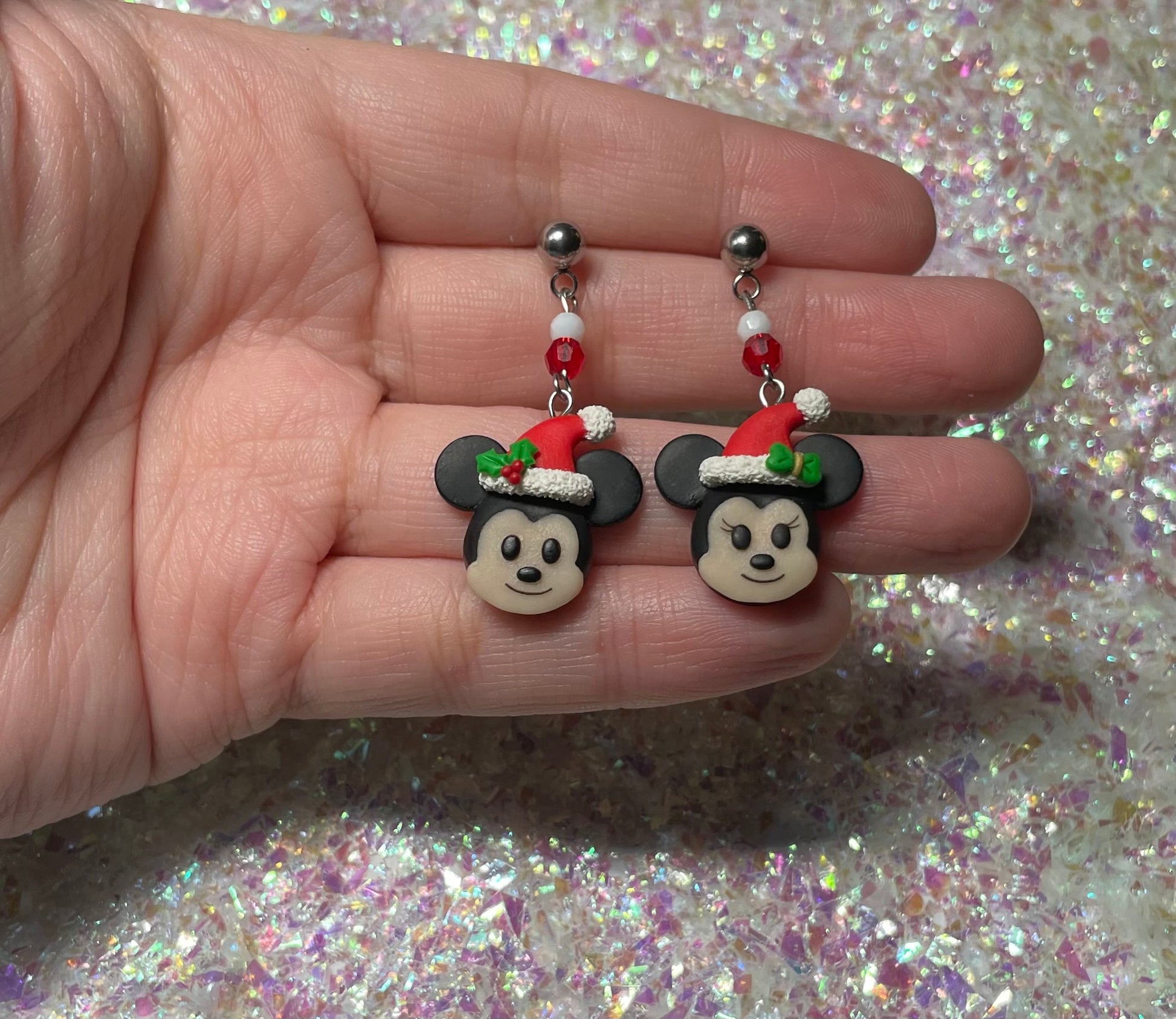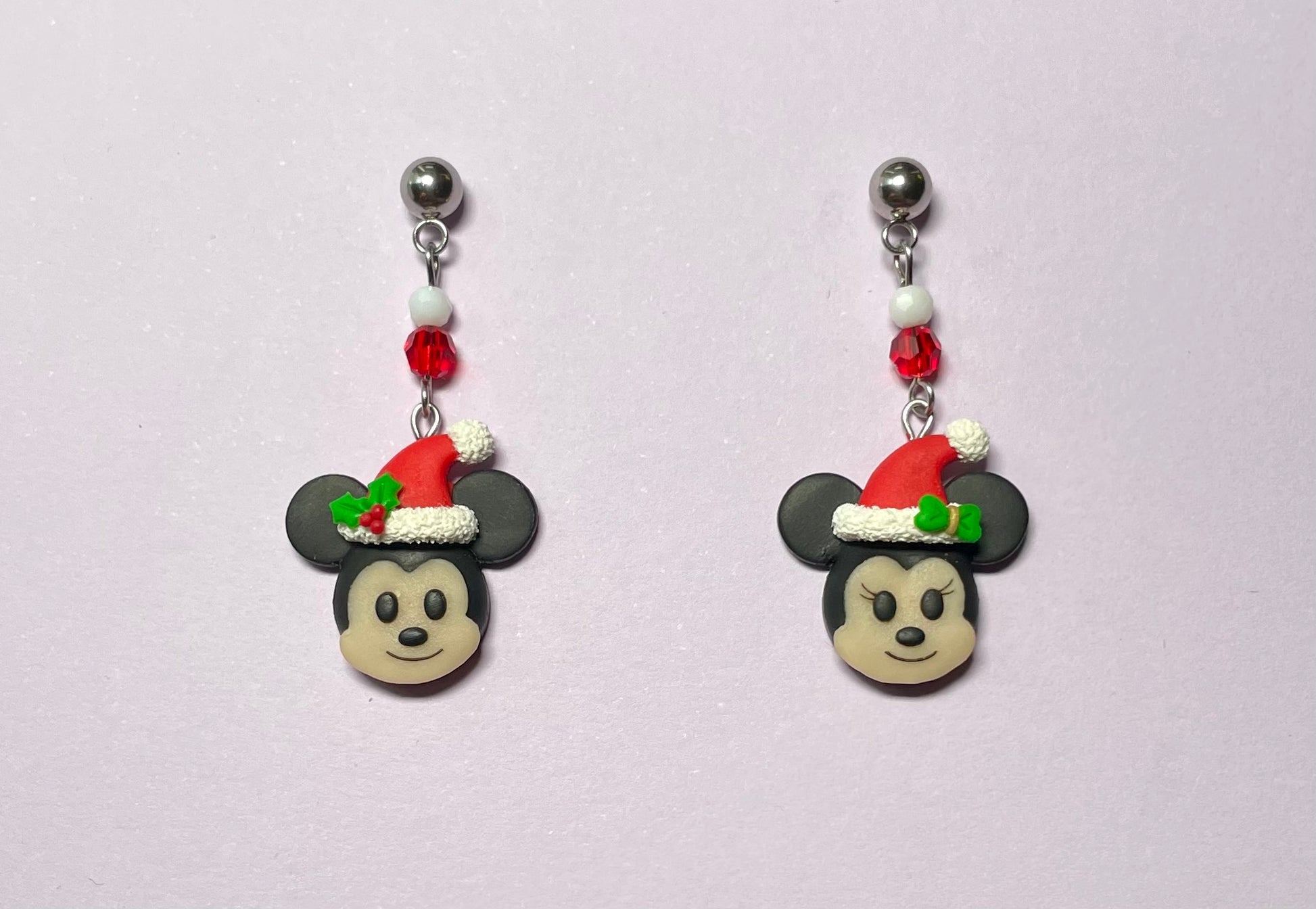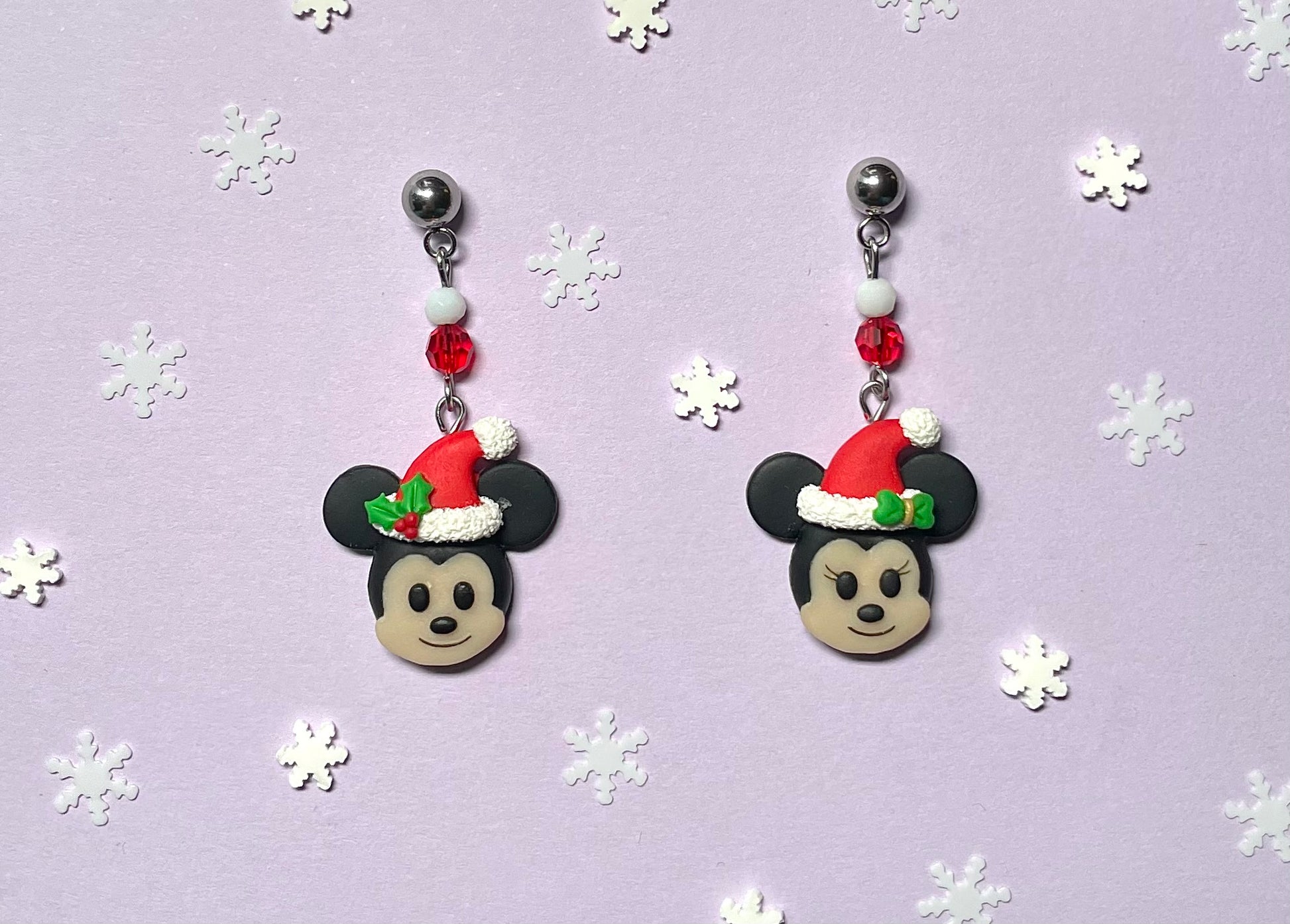 - These festive earrings feature the lovely mouse couple wearing Santa hats