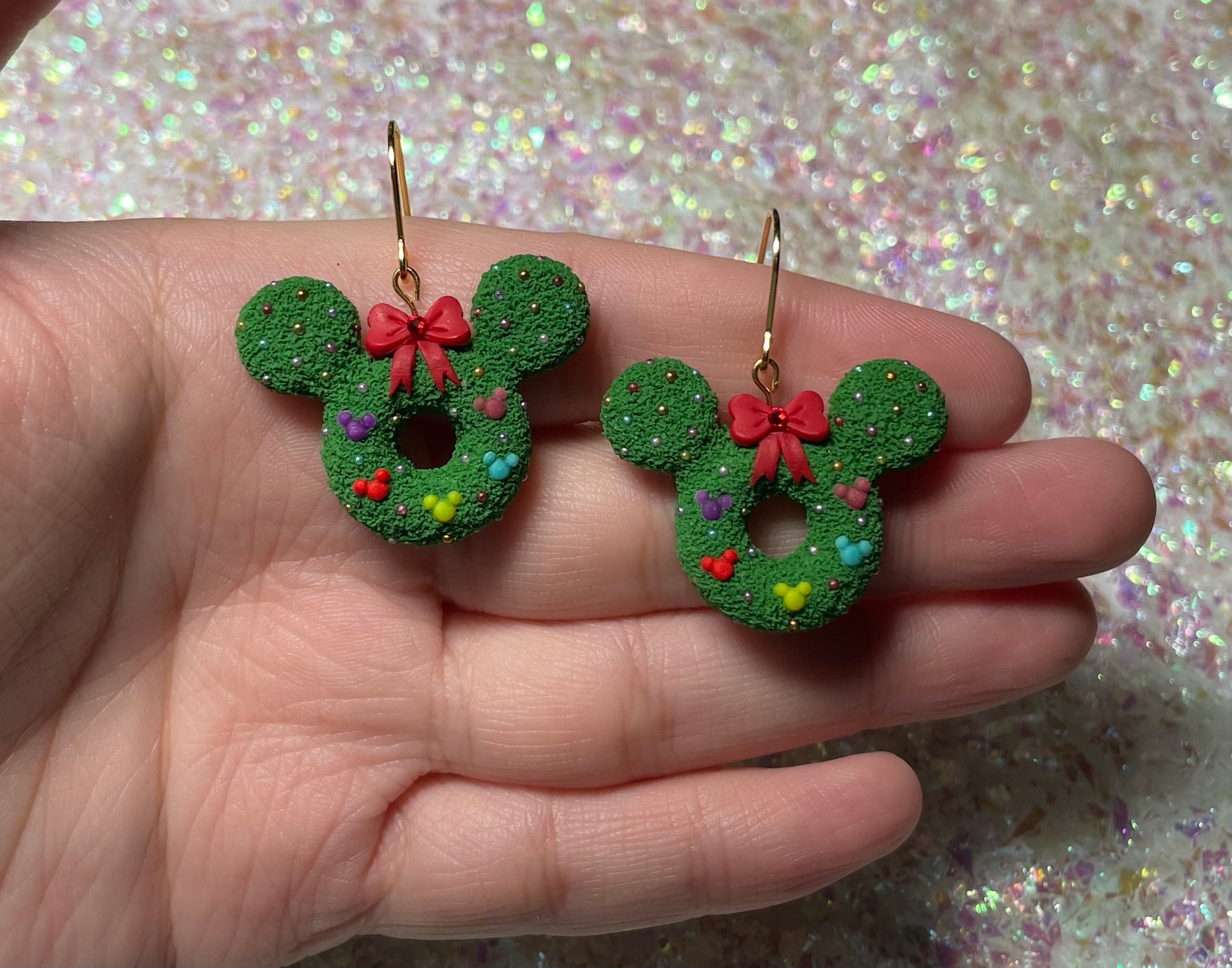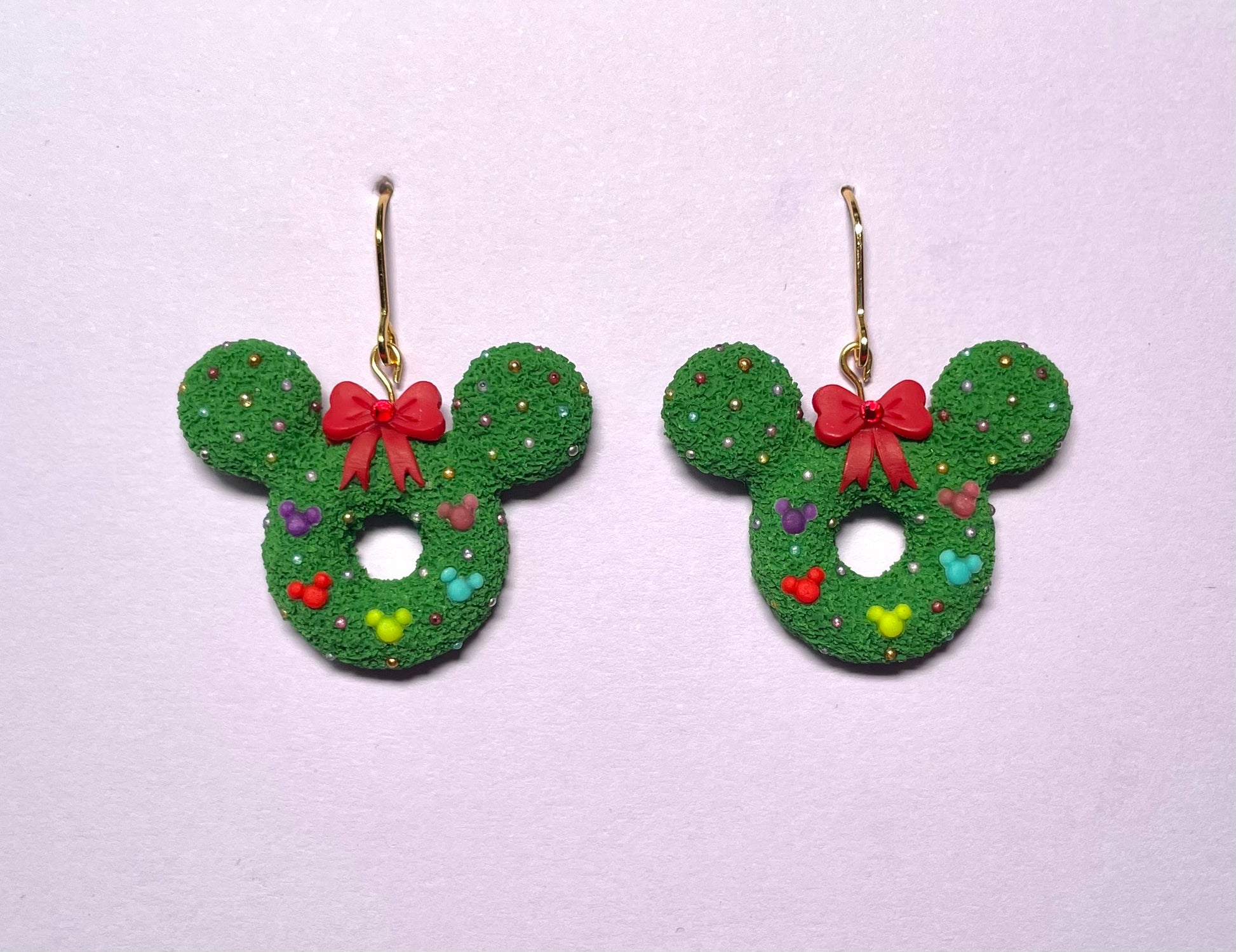 - These wreath earrings are decorated with mini mouse heads and microbeads