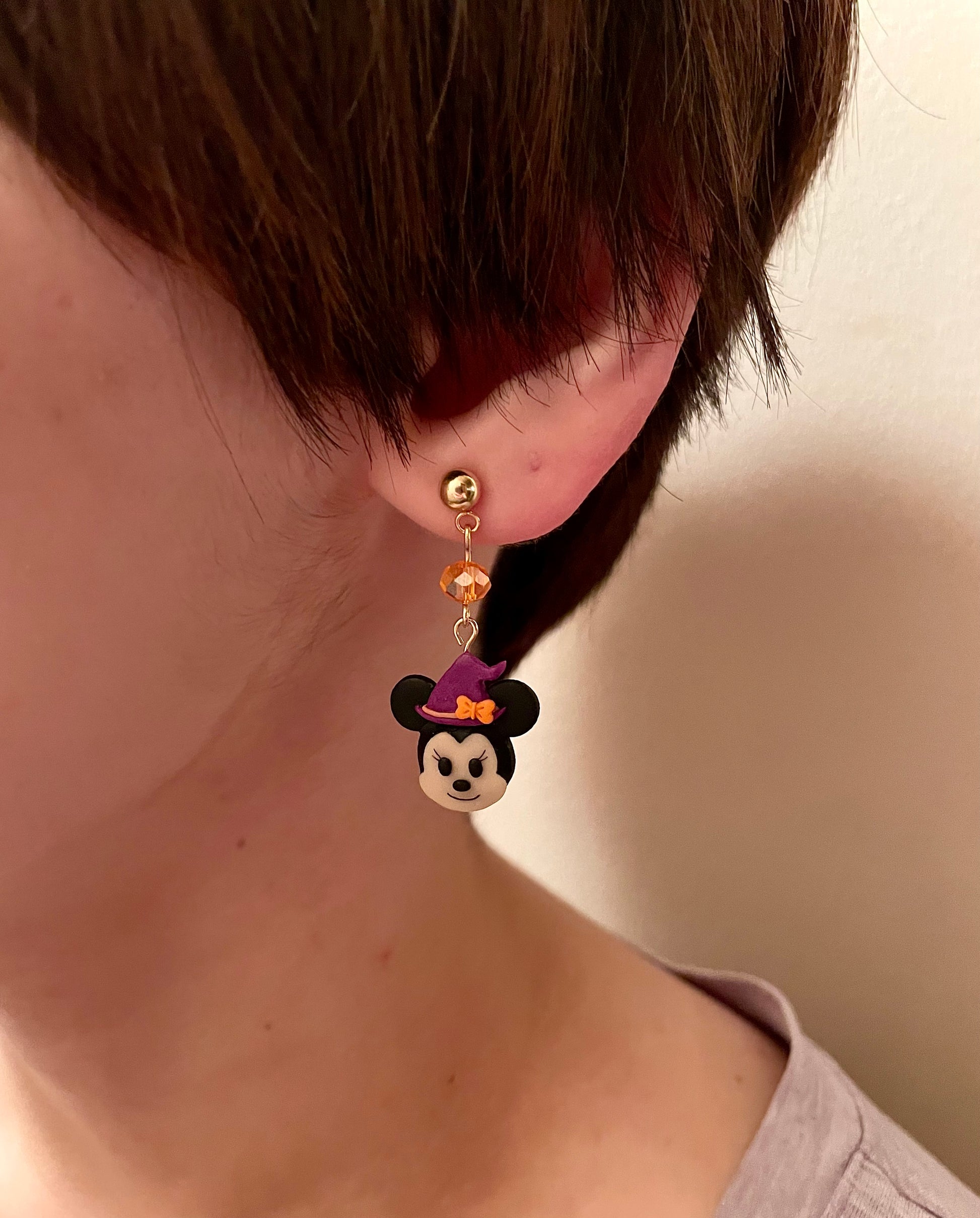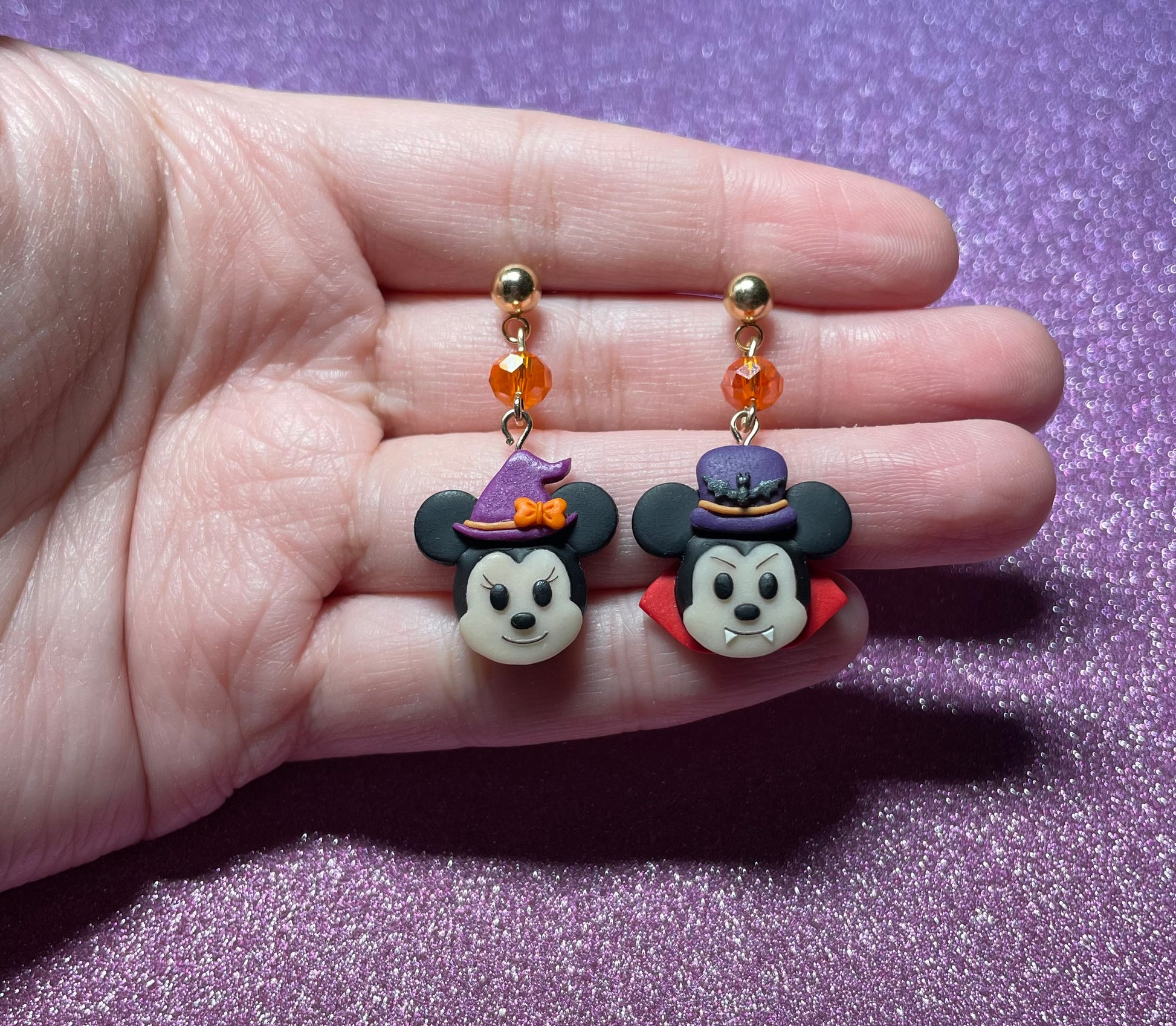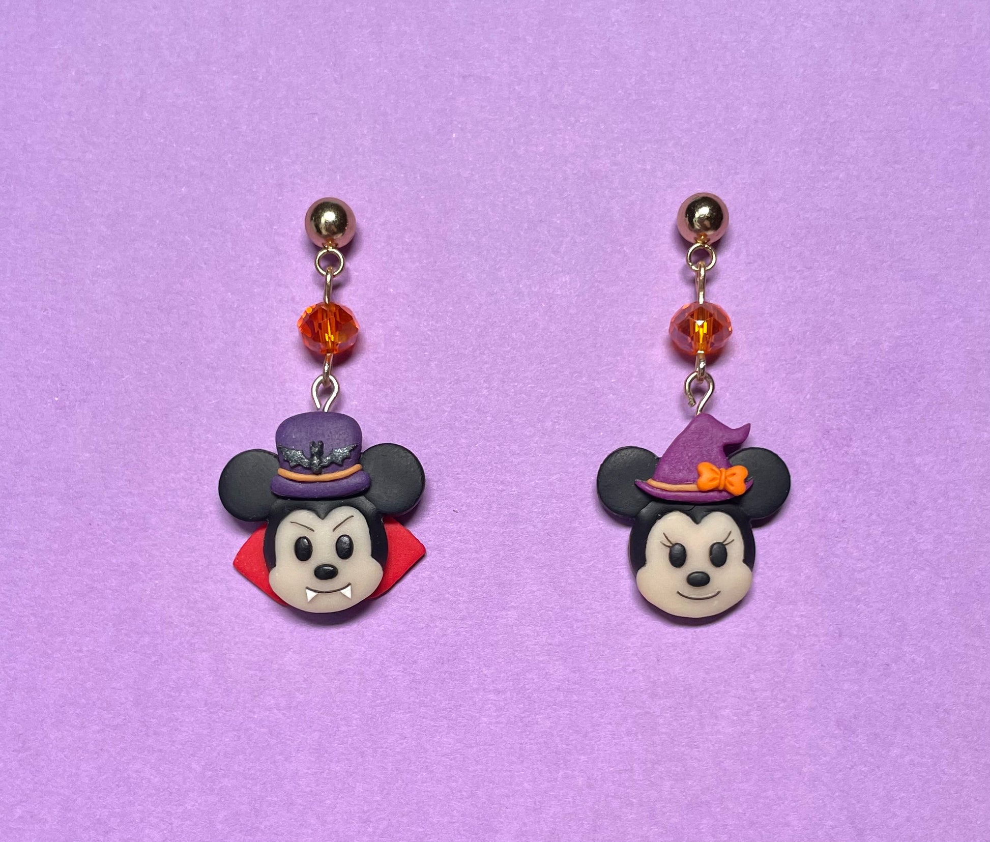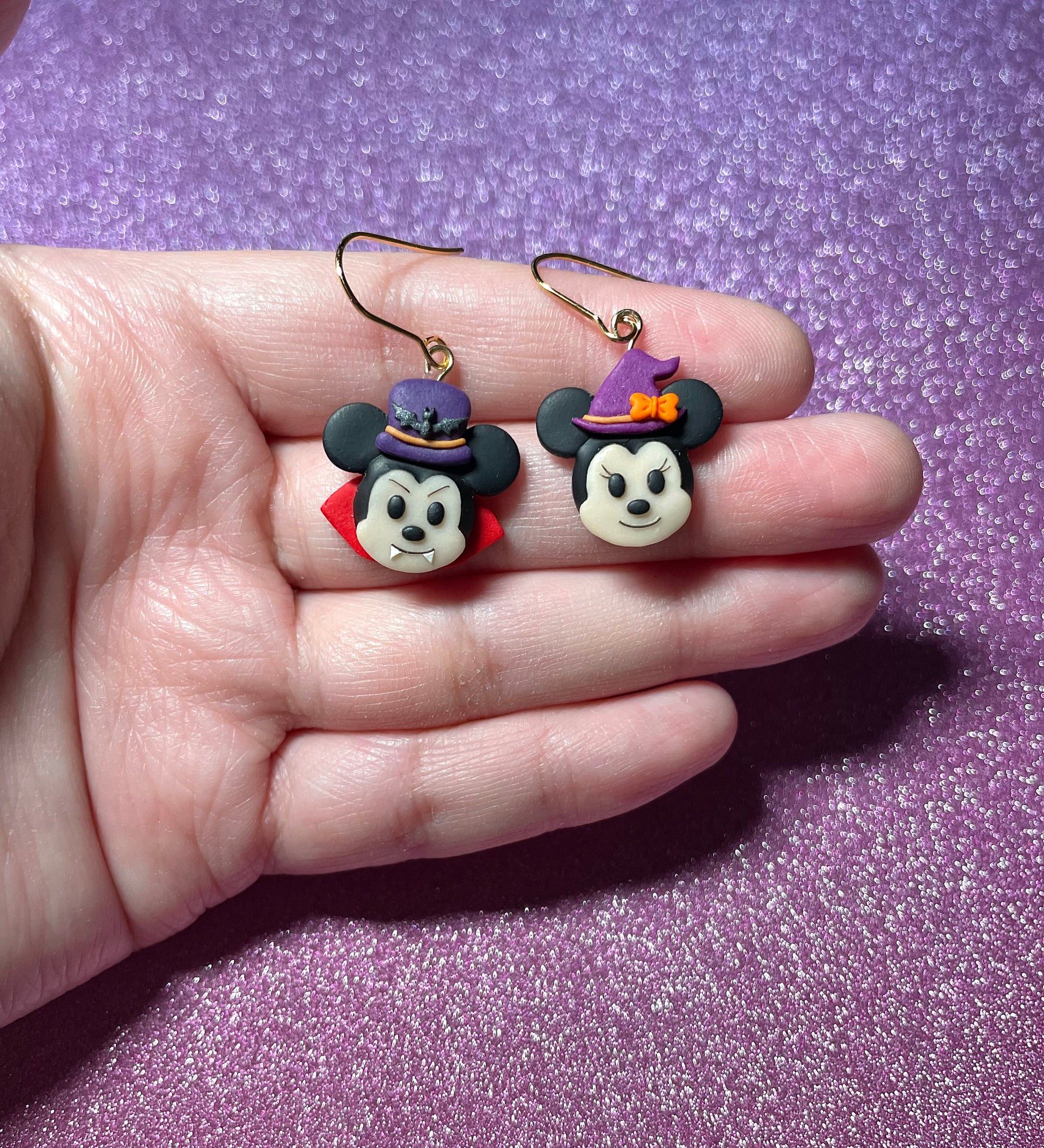 - Embrace the spooky season with these mouse couple earrings, dressed up in their festive costumes