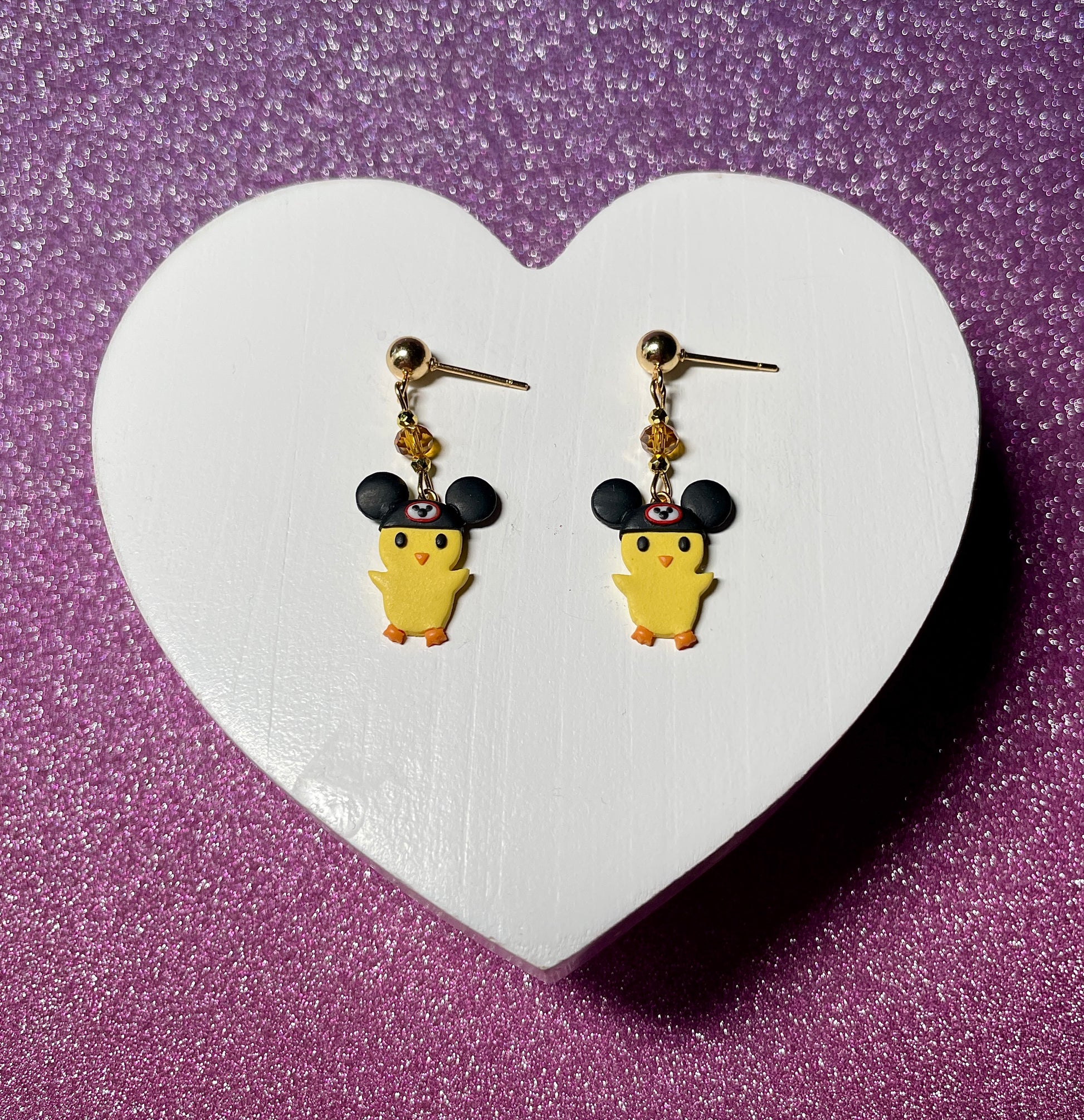 - These earrings feature adorable little chicks wearing the famous mouse ears
