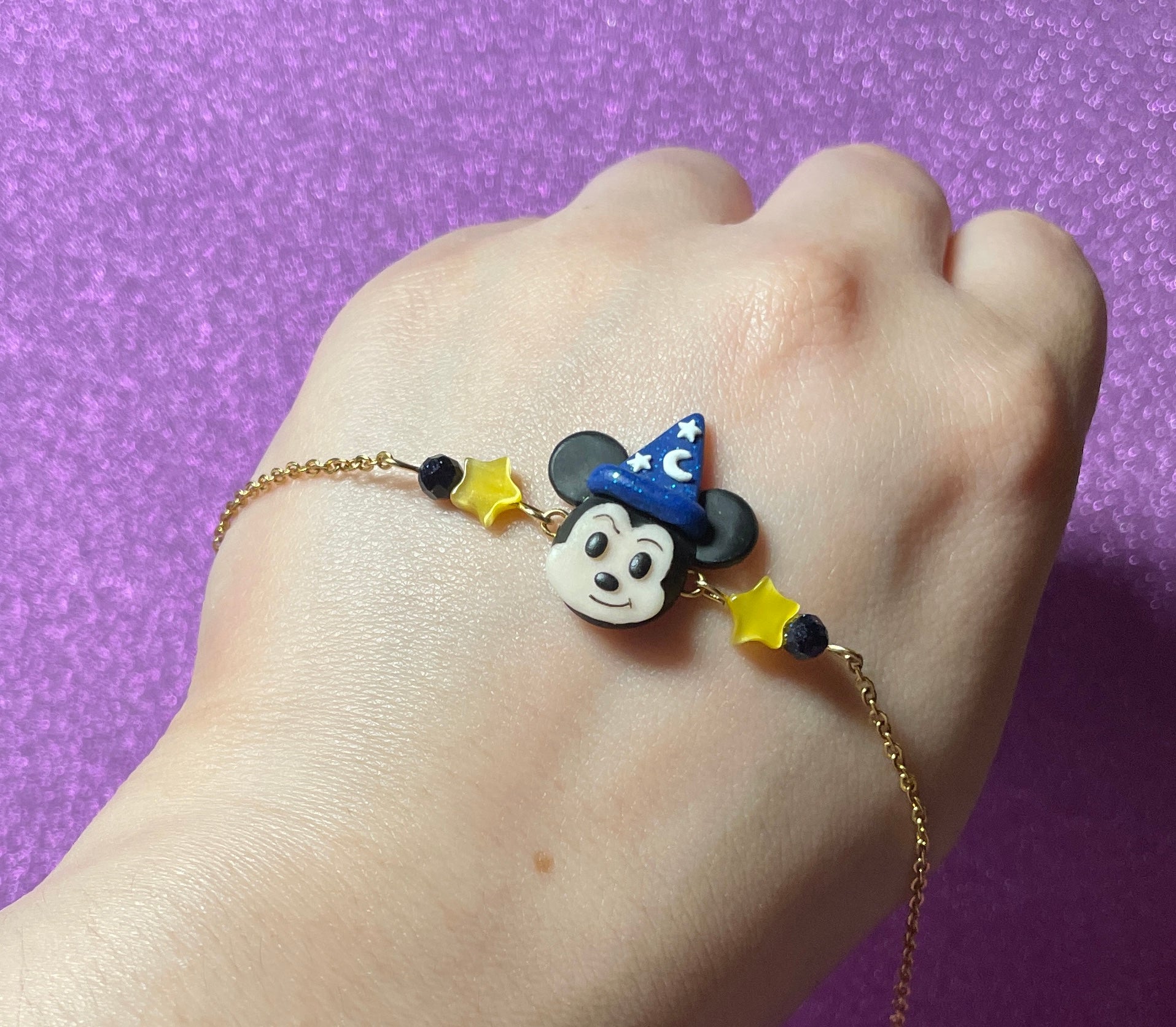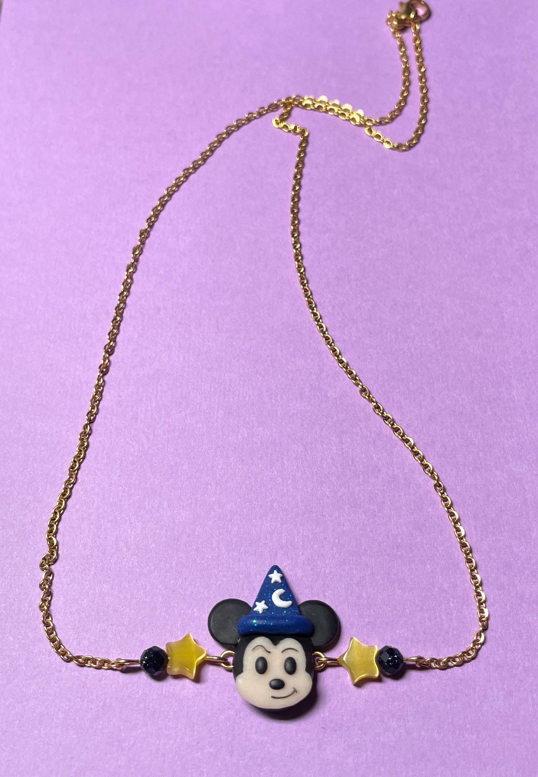 - This necklace features the triumphant sorcerer mouse surrounded by stars and glittery beads